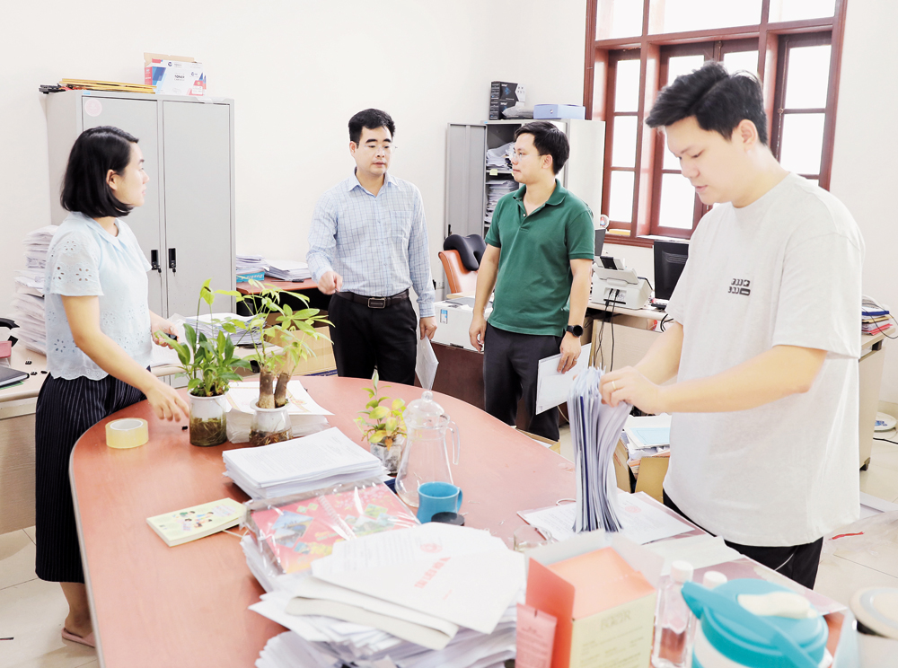 | Cán bộ, công chức Đảng ủy phường Kinh Bắc sắp xếp nơi làm việc mới. |