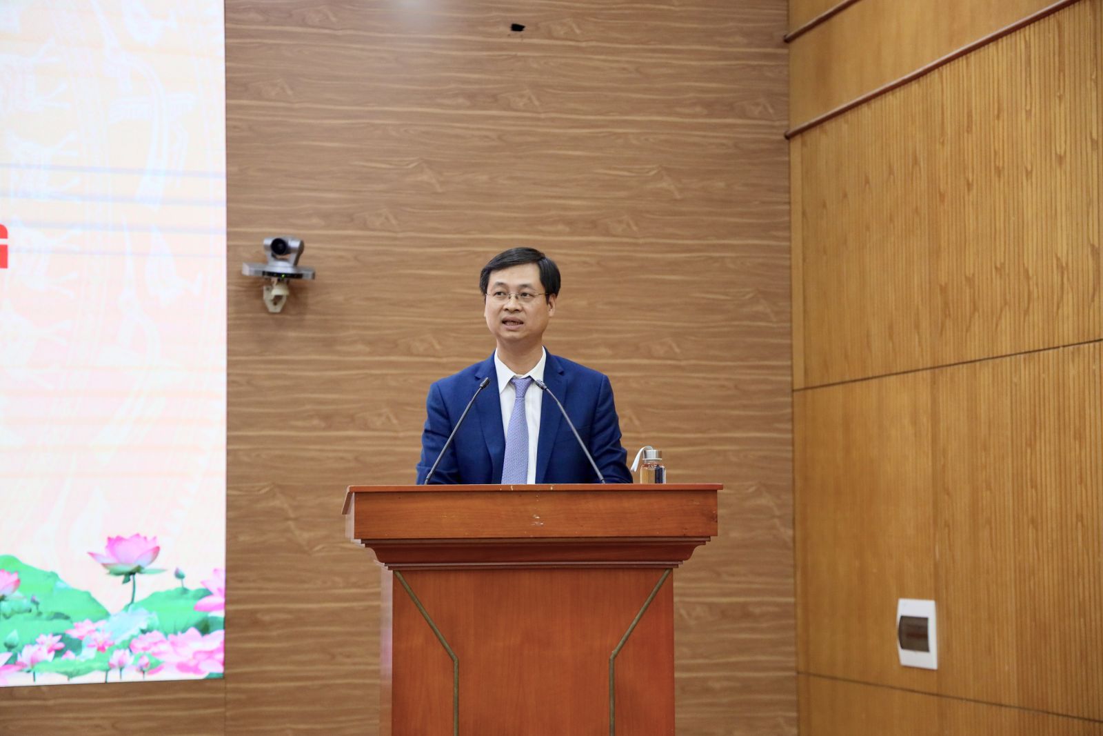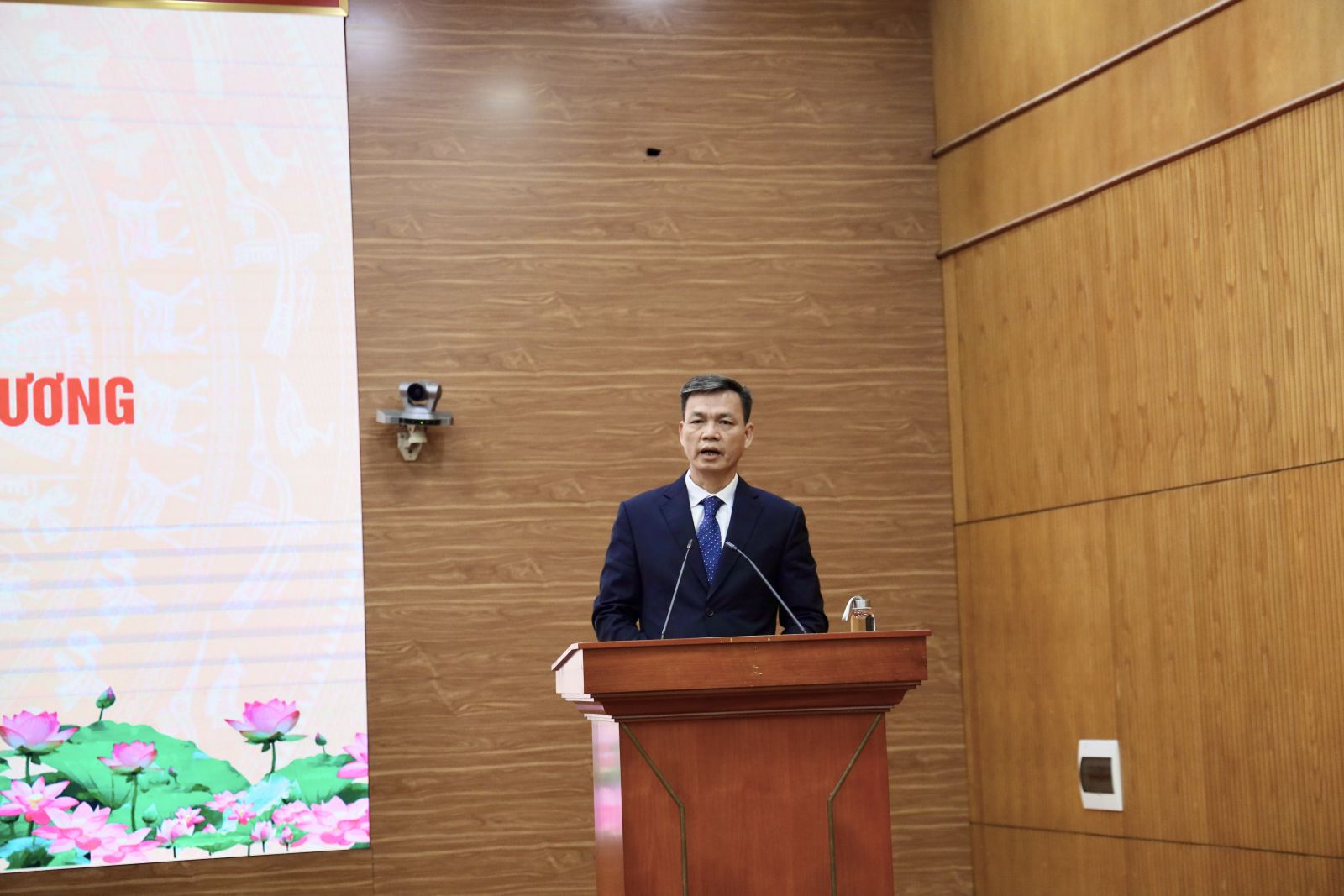 Đồng chí Nguyễn Duy Hưng, Phó Trưởng Ban, Phó Bí thư Đảng ủy cơ quan trình bày Báo cáo