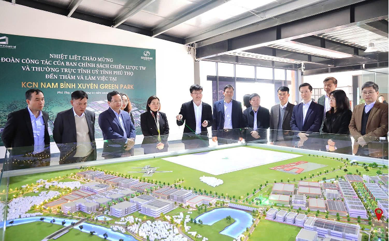Đoàn công tác nghe lãnh đạo Tập đoàn CNCTech giới thiệu mô hình Dự án Khu công nghiệp Nam Bình Xuyên (Nguồn: Báo Phú Thọ)