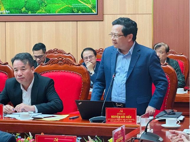 Đồng chí Nguyễn Đức Hiển, Phó Trưởng Ban Chính sách, chiến lược Trung ương phát biểu tại buổi làm việc