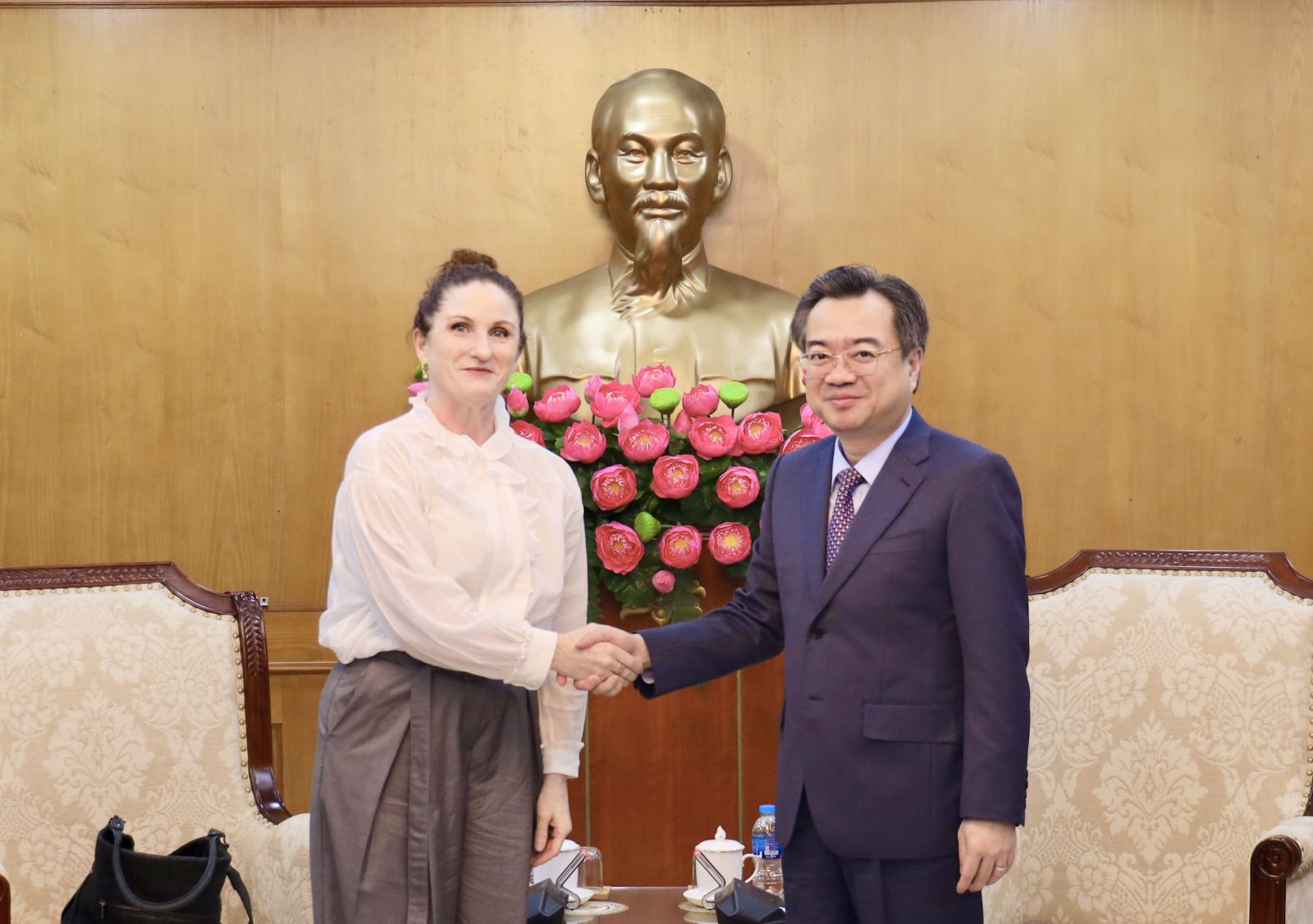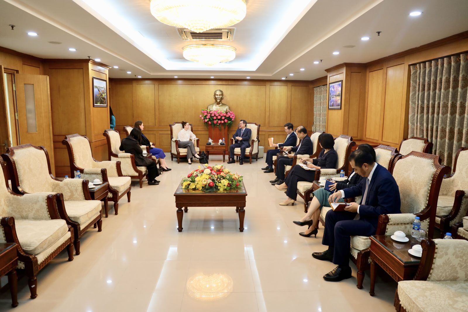 Trưởng Ban Nguyễn Thanh Nghị trao đổi với Đại sứ Caroline Beresford