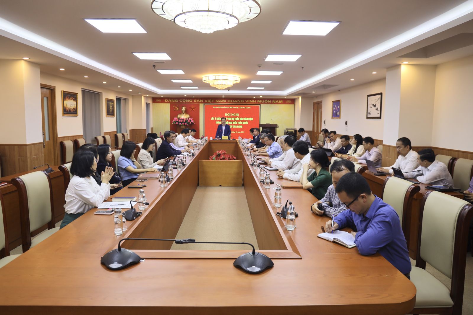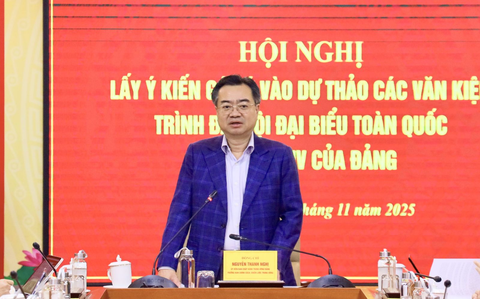 Mở đầu Hội nghị, đồng chí Nguyễn Thanh Nghị nhấn mạnh về ý nghĩa chính trị đặc biệt quan trọng của việc đóng góp ý kiến vào các Dự thảo Văn kiện, nêu những yêu cầu đặt ra trong Văn kiện Đại hội XIV của Đảng. Đồng chí đề nghị các đại biểu góp ý với tinh thần xây dựng và tư duy đổi mới, trong bối cảnh có nhiều nghị quyết chiến lược vừa được ban hành và Ban Chính sách, chiến lược Trung ương đang thực hiện xây dựng một số chính sách cho mục tiêu thúc đấy phát triển khoa học công nghệ, đổi mới sáng tạo và chuyển đổi số, đổi mới mô hình tăng trưởng, chuyển đổi xanh, nâng cao chất lượng nguồn nhân lực, hội nhập quốc tế sâu rộng... Bên cạnh đó, cần chủ động rà soát một số nội dung mới của các Đề án của Ban đang thực hiện để cập nhật vào góp ý cho dự thảo Văn kiện.