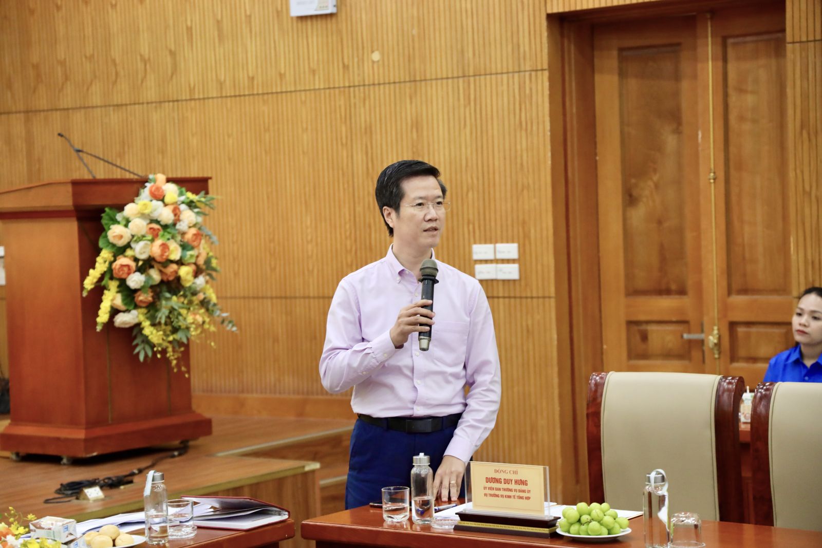 Phát biểu tại Hội nghị, đồng chí Dương Duy Hưng, Ủy viên Ban Thường vụ Đảng ủy cơ quan phụ trách Đoàn Thanh niên, Vụ trưởng Vụ Kinh tế tổng hợp đánh giá cao việc Hội nghị Chi đoàn cơ quan được tổ chức với ý nghĩa to lớn; cho rằng hội nghị đã hoàn thành nhiệm vụ đánh giá lại kết quả hoạt động của giai đoạn vừa qua, nhìn nhận tồn tại, hạn chế và quan trọng hơn đã bầu bổ sung vào Ban Chấp hành, bầu đại biểu đi dự Đại hội Đoàn cấp trên. Đồng chí Dương Duy Hưng đánh giá cao những kết quả đạt được của Chi đoàn cơ quan từ khi tổ chức Đại hội Khóa V đến nay; đồng thời đề nghị Chi đoàn bám sát nhiệm vụ, yêu cầu của cơ quan để thực hiện nhiệm vụ của mình; xung kích đi đầu trong đổi mới sáng tạo, lan tỏa năng lượng tích cực.