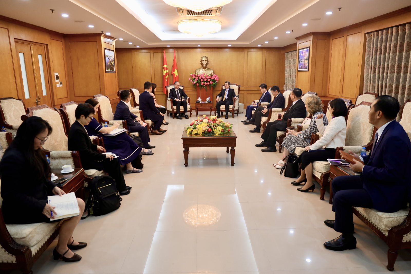 Trưởng Ban Nguyễn Thanh Nghị trao đổi với đoàn công tác của Amazon