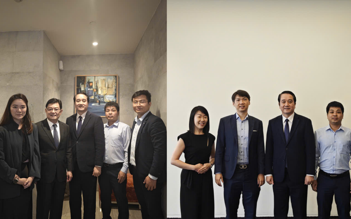 Giám đốc Đào Ngọc Chiến chụp ảnh lưu niệm cùng ông ông Heng Swee Keat, Nguyên Phó Thủ tướng, Chủ tịch Quỹ Nghiên cứu quốc gia Singapore (NRF) (bên trái) và GS. Benjamin Tee, Phó Giám đốc phụ trách sáng tạo và khởi nghiệp NUS (bên phải).