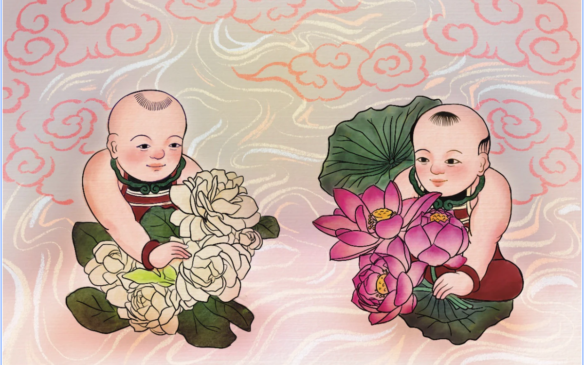 Bức “Em bé ôm hoa” dựa trên cặp tranh “Vinh hoa - Phú quý” nổi tiếng.