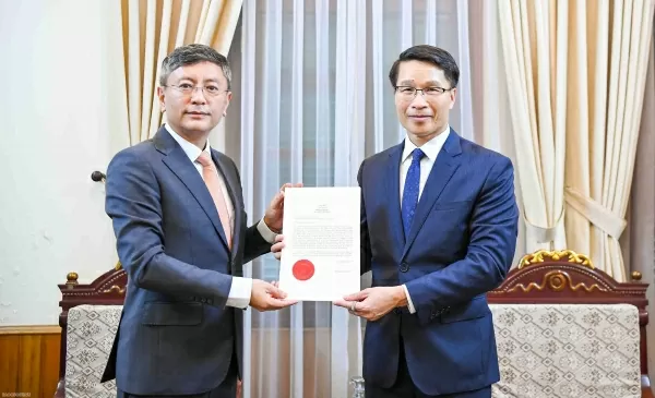 | Cục trưởng Cục Lễ tân Nhà nước và Phiên dịch đối ngoại Phạm Bình Đàm tiếp nhận bản sao Thư ủy nhiệm bổ nhiệm Đại sứ Ấn Độ tại Việt Nam từ ông Tshering W. Sherpa. (Ảnh: Minh Nhật) |
