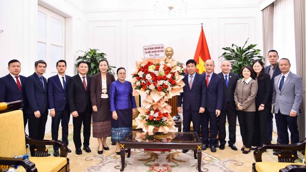 Đoàn đại biểu Đại sứ quán Lào tại Việt Nam chúc mừng nhân kỷ niệm 96 năm Ngày thành lập Đảng