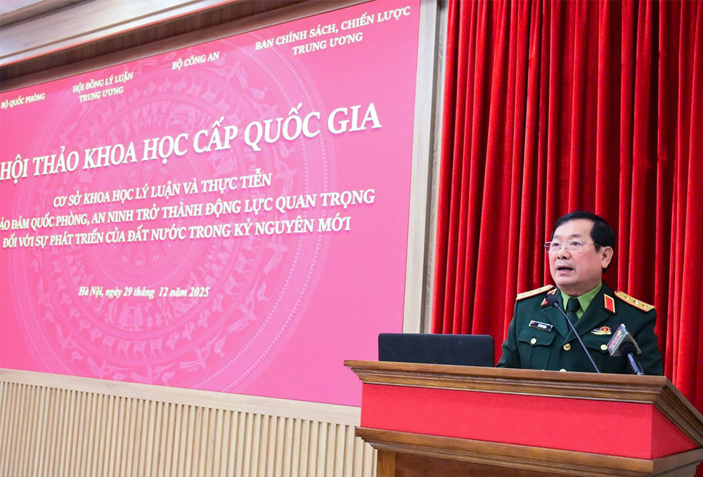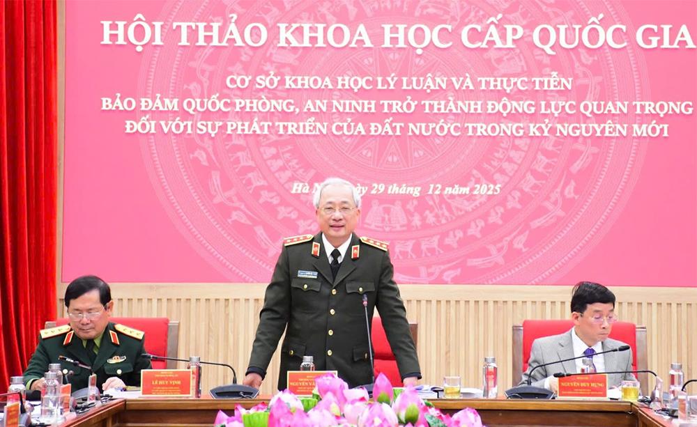 (Bqp.vn) - Sáng 29/12, tại Học viện Chính trị quốc gia Hồ Chí Minh, Hội đồng Lý luận Trung ương phối hợp với Ban Chính sách, Chiến lược Trung ương, Bộ Quốc phòng, Bộ Công an tổ chức Hội thảo khoa học cấp quốc gia “Cơ sở khoa học lý luận và thực tiễn bảo đảm quốc phòng, an ninh trở thành động lực quan trọng đối với sự phát triển của đất nước trong kỷ nguyên mới”.