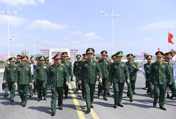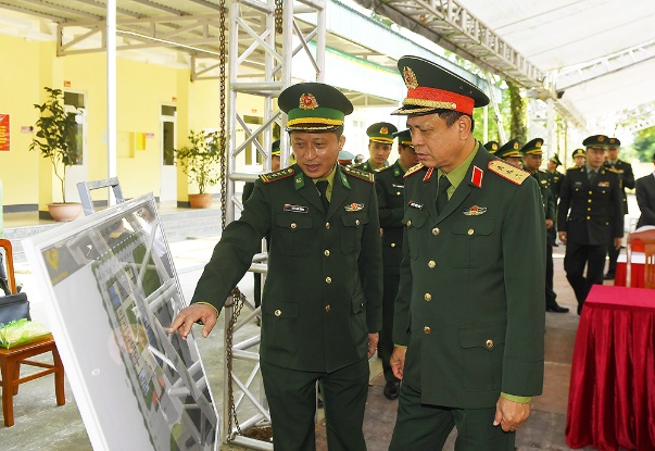 Các đồng chí lãnh đạo Bộ Quốc phòng và đoàn công tác kiểm tra thực địa các địa điểm diễn ra các hoạt động trong khuôn khổ Giao lưu.