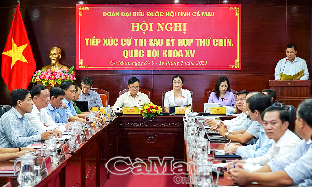 Tiếp nối chương trình tiếp xúc cử tri kéo dài 3 ngày (từ ngày 8-10/7), sáng 9/7, từ điểm cầu chính trụ sở Đoàn Đại biểu Quốc hội (ĐBQH) và HĐND tỉnh, Đoàn ĐBQH Khóa XV tỉnh Cà Mau tổ chức phiên tiếp xúc trực tuyến với 300 cử tri của 15 xã, phường trong tỉnh.