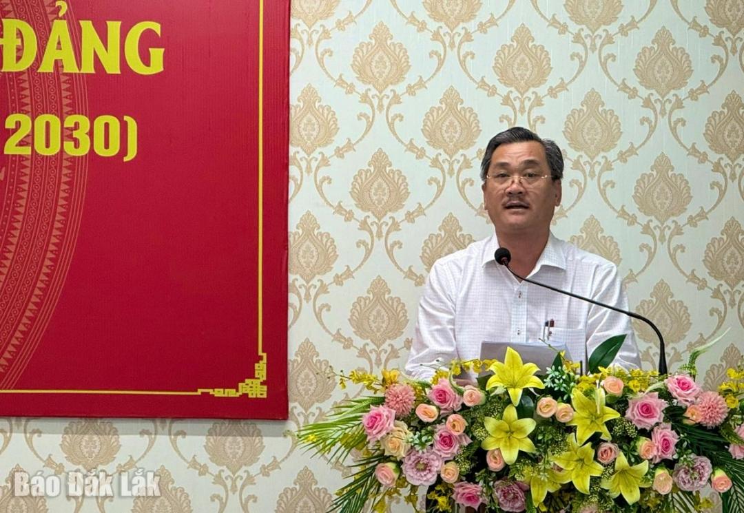 | Phó Bí thư chuyên trách Đảng ủy UBND tỉnh Nguyễn Hữu Từ phát biểu khai mạc lớp bồi dưỡng nhận thức về Đảng. |