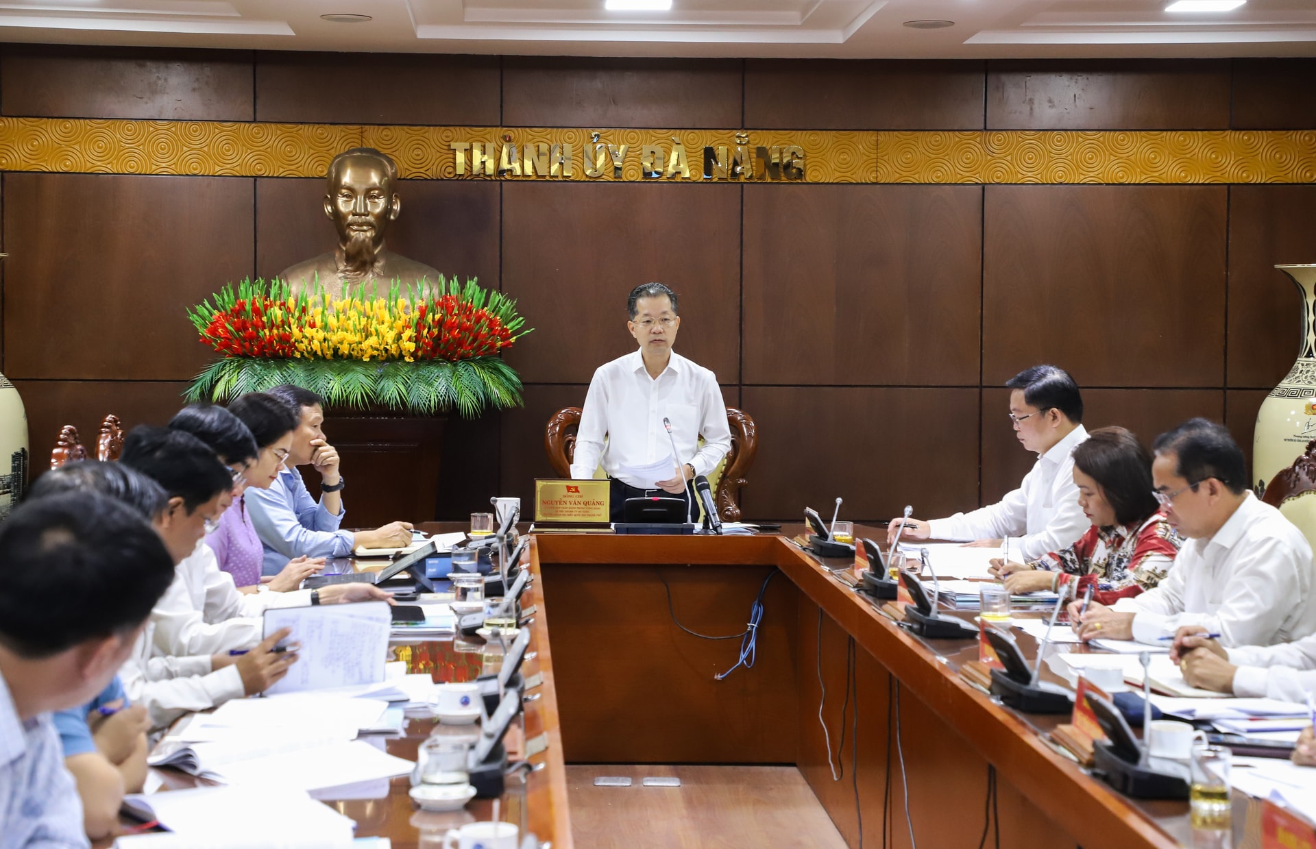 Bí thư Thành ủy Nguyễn Văn Quảng phát biểu kết luận buổi làm việc. Ảnh: NGỌC PHÚ
