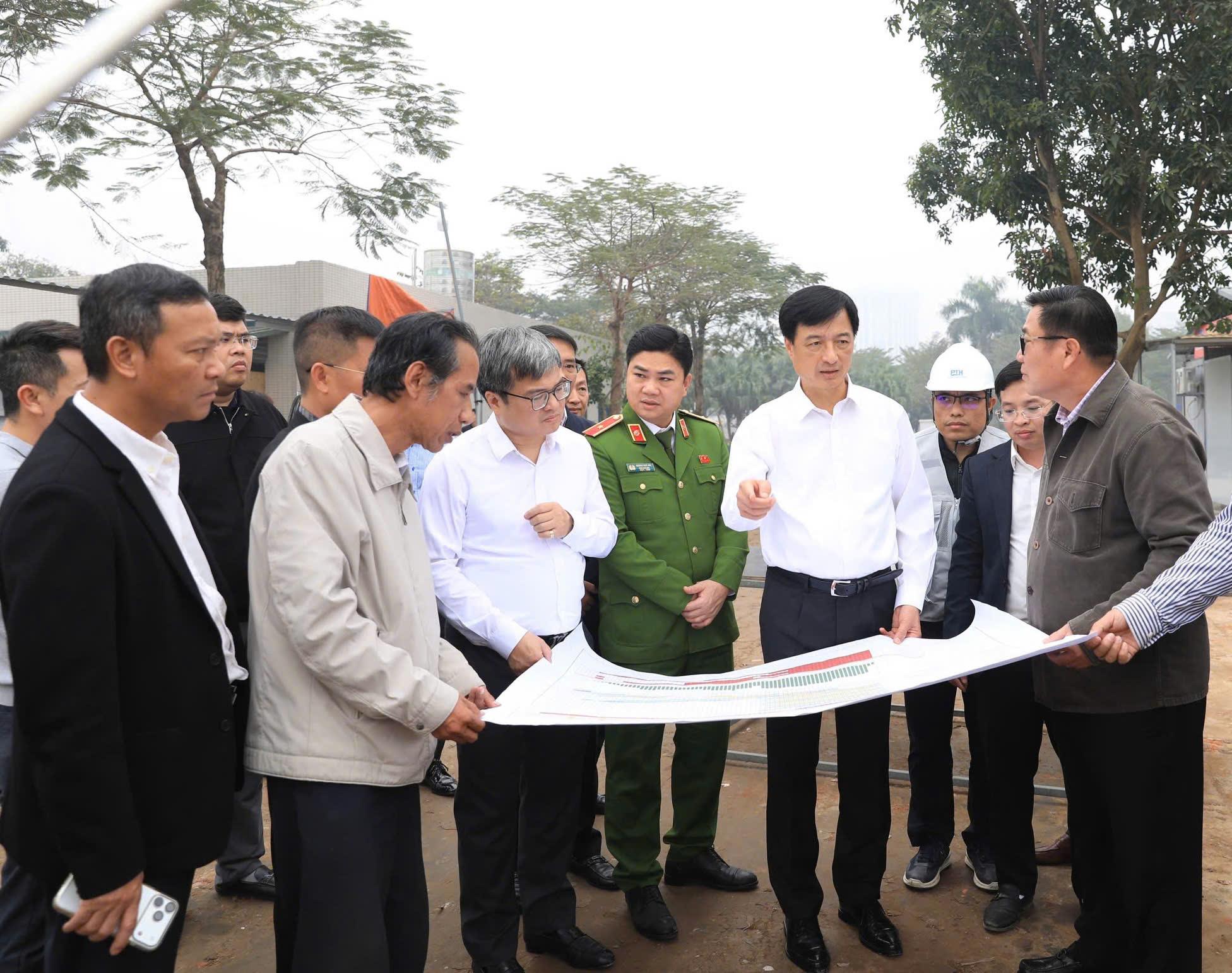 Tiếp tục chương trình kiểm tra, Bí thư Thành ủy Nguyễn Duy Ngọc đã đến thị sát công trường dự án đầu tư xây dựng hồ điều hòa Phú Đô (phường Từ Liêm), đặc biệt lưu ý chủ đầu tư, nhà thầu phải đẩy nhanh tiến độ thi công và xong trước mùa mưa năm 2026 để đáp ứng việc tiêu thoát nước trong khu vực.