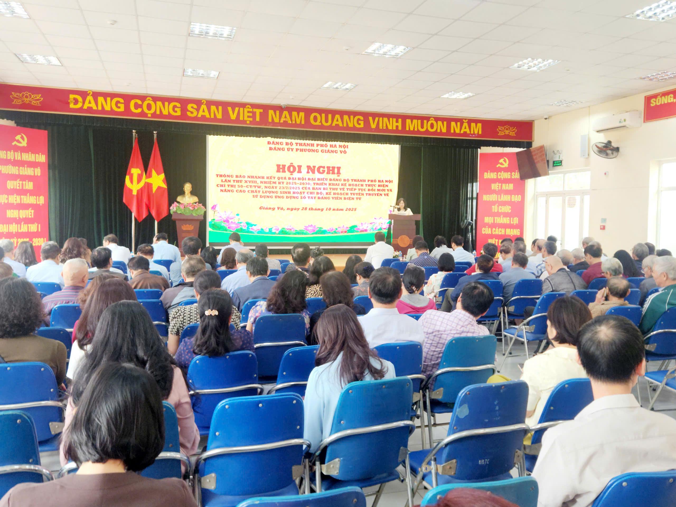 Đảng ủy phường Giảng Võ: Thông tin kết quả Đại hội Đại biểu Đảng bộ thành phố Hà Nội lần thứ XVIII, nhiệm kỳ 2025-2030