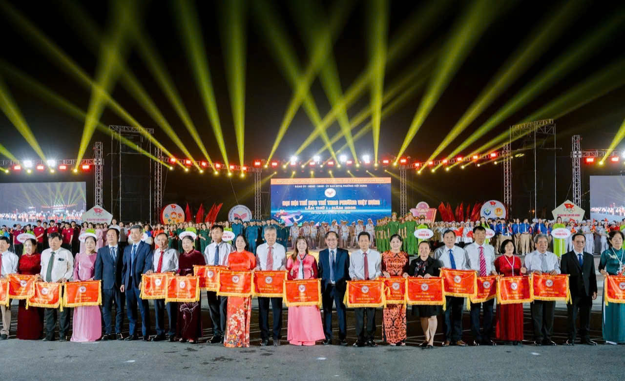 Chương trình đồng diễn nghệ thuật - thể thao với chủ đề “Thắp sáng niềm tin - Việt Hưng vững bước vươn xa” khép lại lễ khai mạc trong không khí sôi nổi, tự hào. Gần 1.000 vận động viên, diễn viên quần chúng đã mang đến những tiết mục đặc sắc, thể hiện tinh thần “Khỏe để xây dựng và bảo vệ Tổ quốc”, khẳng định sức sống mới của phong trào thể thao cơ sở.