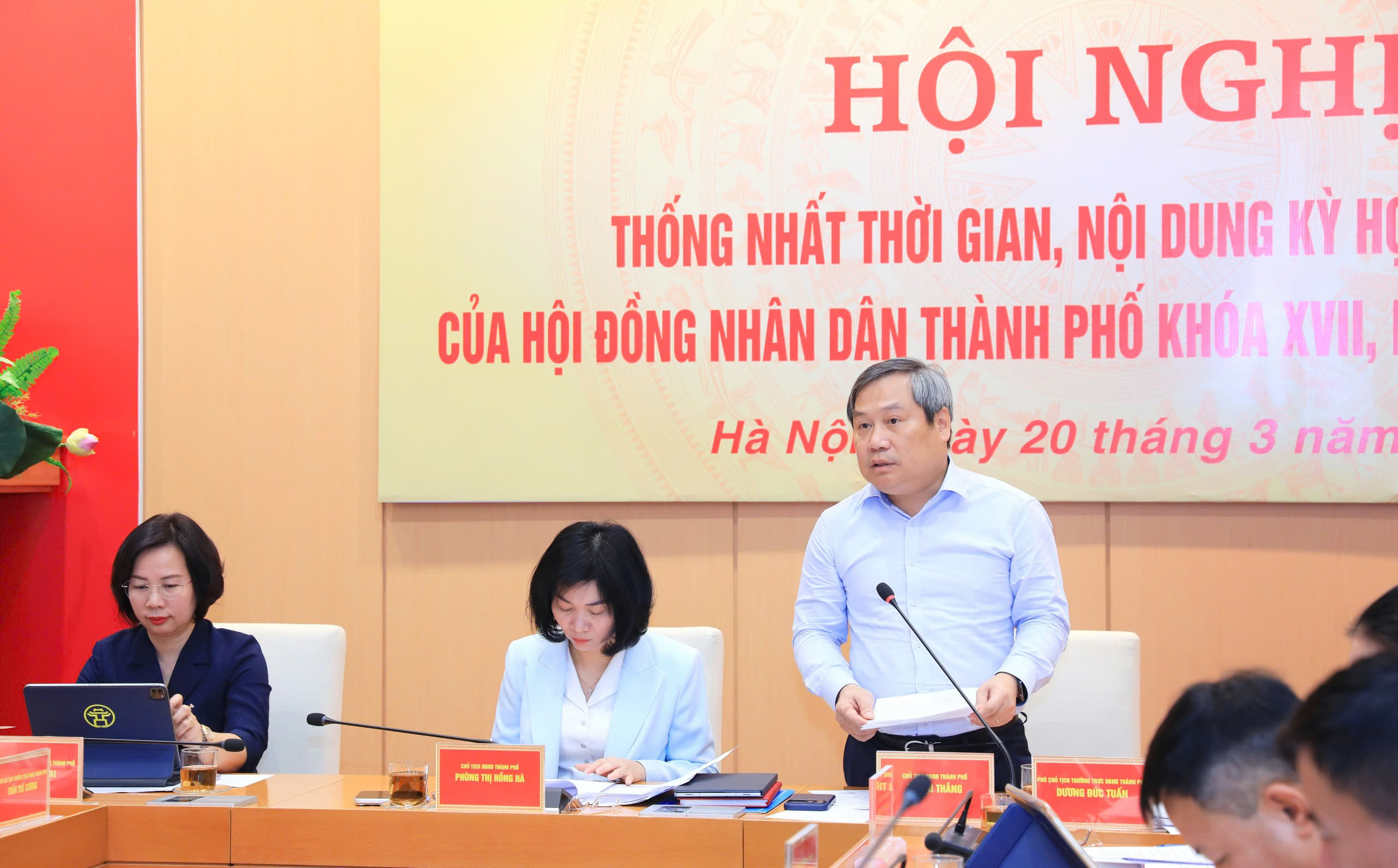 Phát biểu tại hội nghị, Ủy viên Trung ương Đảng, Phó Bí thư Thành ủy, Chủ tịch UBND thành phố Vũ Đại Thắng bày tỏ sự đồng thuận cao với chương trình, nội dung kỳ họp. Chủ tịch UBND thành phố cho rằng, bên cạnh các vấn đề liên quan công tác tổ chức, nhân sự, kỳ họp cần dành thời gian thỏa đáng để các đại biểu thảo luận các nội dung về phát triển kinh tế - xã hội, coi đây là trụ cột gắn với định hướng phát triển chung của Chính phủ và thành phố. Đặc biệt, tại kỳ họp này, HĐND thành phố xem xét dự thảo Nghị quyết thông qua Quy hoạch tổng thể Thủ đô tầm nhìn 100 năm, tạo cơ sở và động lực để các cấp, các ngành triển khai hiệu quả.