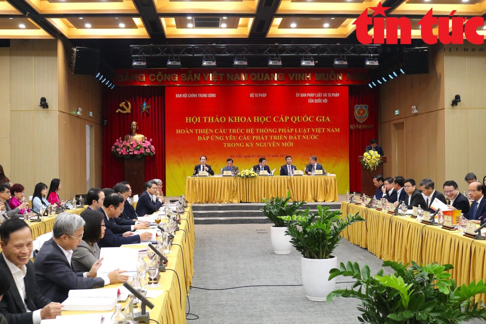 Trong chương trình, đại diện lãnh đạo các ban, bộ, ngành Trung ương, lãnh đạo và đại diện một số tỉnh, thành phố trực thuộc Trung ương; các chuyên gia, nhà khoa học, các nhà quản lý và hoạt động thực tiễn tập trung thảo luận, làm rõ căn cứ lý luận, nền tảng cho việc hoàn thiện cấu trúc hệ thống pháp luật để đáp ứng yêu cầu phát triển trong giai đoạn mới.