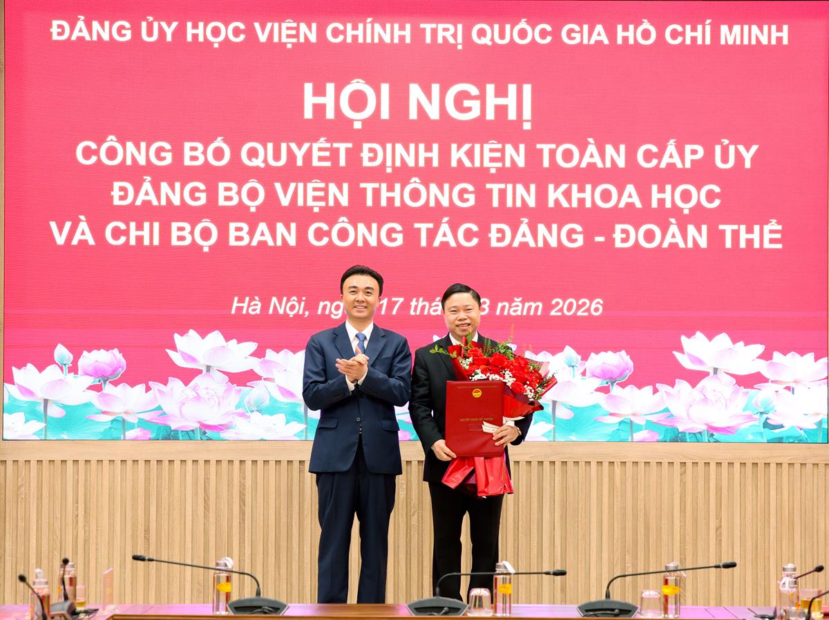 Công bố quyết định kiện toàn cấp ủy của Đảng bộ Viện Thông tin khoa học và Chi bộ Ban Công tác Đảng - Đoàn thể, nhiệm kỳ 2025-2030