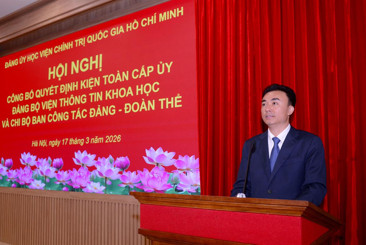 Tại hội nghị, thừa ủy quyền của Ban Thường vụ Đảng ủy Học viện, đồng chí Đào Anh Tuấn - Phó Trưởng ban thường trực Ban Tổ chức Đảng ủy Học viện đã công bố quyết định: