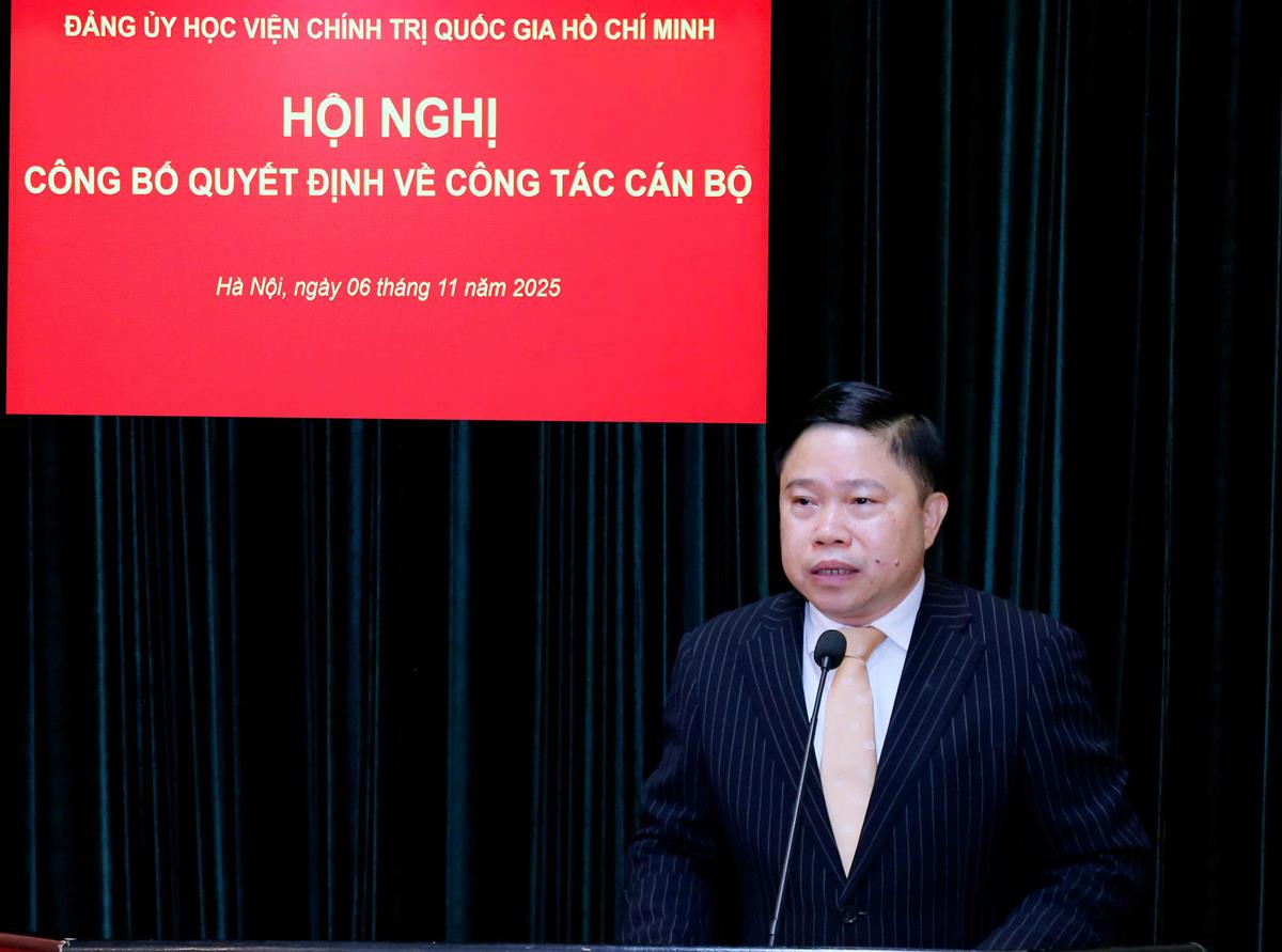 Thừa uỷ quyền của Giám đốc Học viện và Ban Thường vụ Đảng uỷ Học viện Chính trị quốc gia Hồ Chí Minh, PGS,TS Đinh Ngọc Giang, Uỷ viên Ban Thường vụ, Trưởng Ban Tổ chức Đảng uỷ, Vụ trưởng Vụ Tổ chức cán bộ công bố các Quyết định: