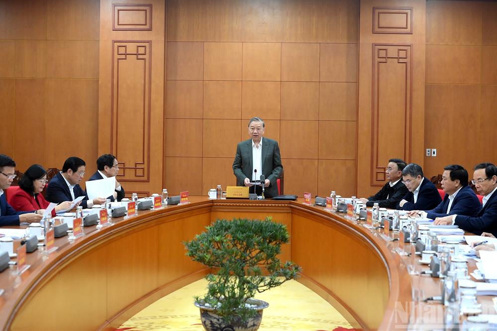 Tổng Bí thư Tô Lâm phát biểu tại cuộc làm việc với Thường trực các Tiểu ban Đại hội XIV của Đảng.
