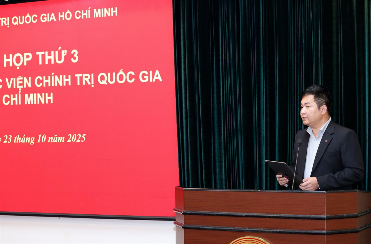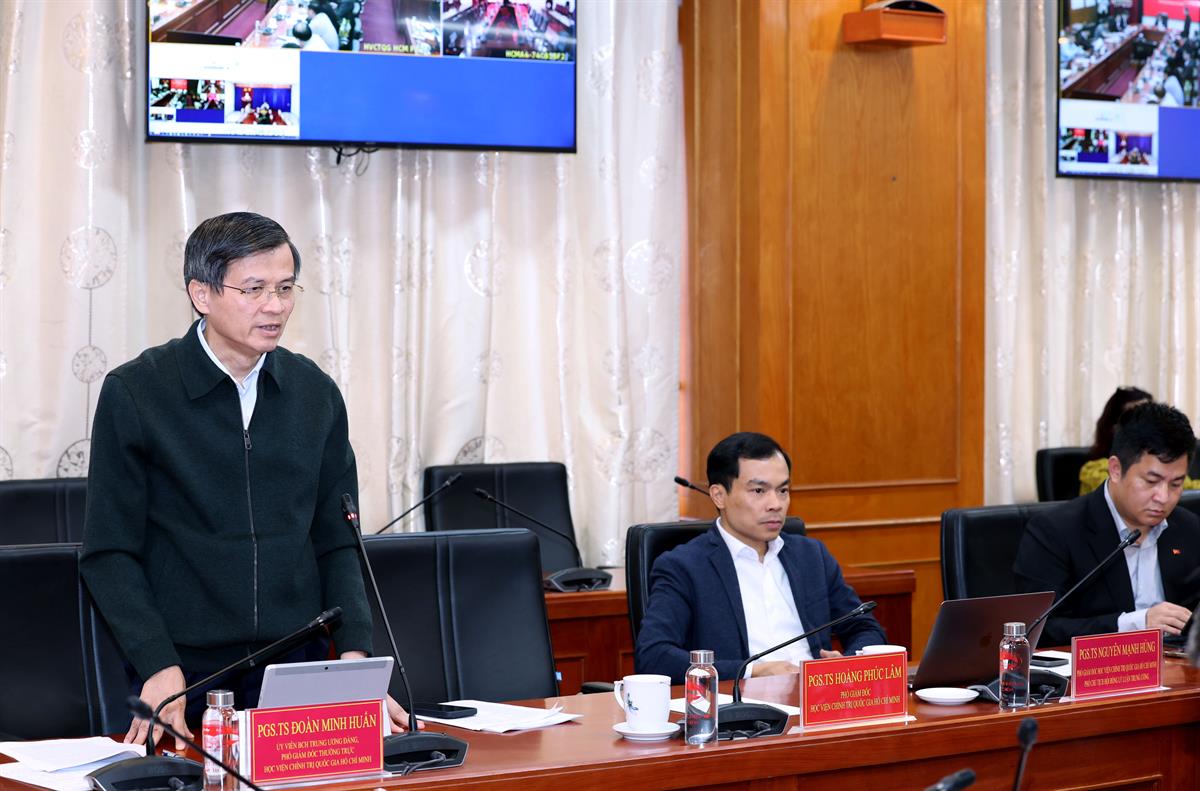 PGS,TS Đoàn Minh Huấn, Ủy viên Trung ương Đảng, Phó Giám đốc thường trực Học viện phát biểu tại hội nghị