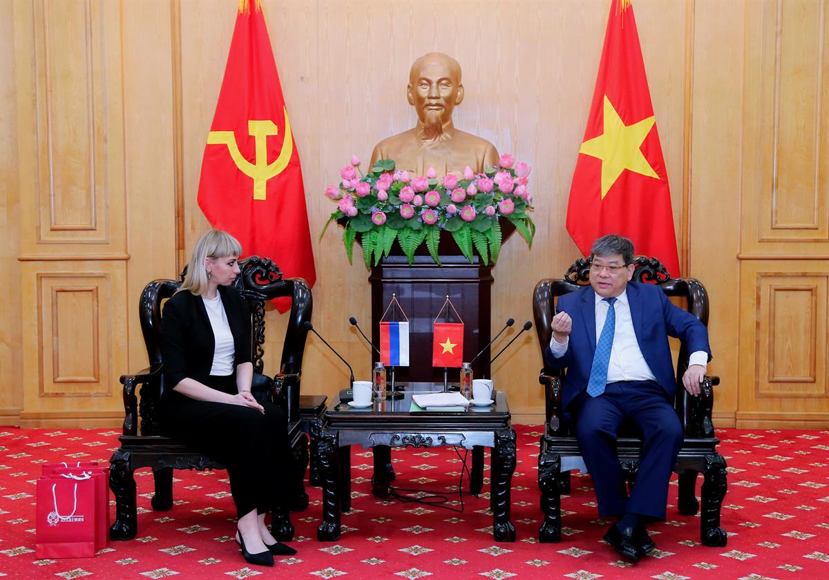 Tại cuộc gặp, bà Natalia, Vụ trưởng Vụ Hợp tác quốc tế Học viện Tổng thống Liên bang Nga trân trọng chuyển công văn chúc mừng của lãnh đạo Học viện Tổng thống Liên bang Nga tới PGS,TS Đoàn Minh Huấn nhân dịp đồng chí được bầu vào Ủy viên Bộ Chính trị và được phân công giữ chức Giám đốc Học viện Chính trị quốc gia Hồ Chí Minh.