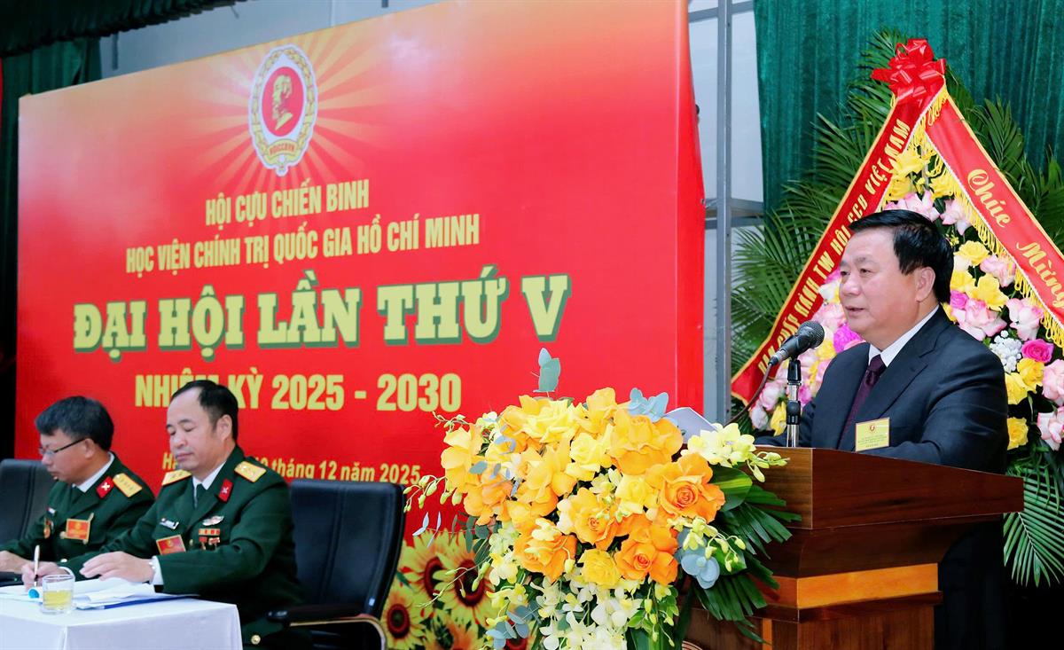 Phát biểu chỉ đạo Đại hội, GS,TS Nguyễn Xuân Thắng, Ủy viên Bộ Chính trị, Giám đốc Học viện Chính trị quốc gia Hồ Chí Minh, Chủ tịch Hội đồng Lý luận Trung ương ghi nhận, biểu dương và đánh giá cao những kết quả nổi bật mà Hội Cựu chiến binh Học viện đạt được trong nhiệm kỳ qua. Bày tỏ niềm tự hào của một người đồng đội trước tinh thần tiên phong, phẩm chất Bộ đội Cụ Hồ và những đóng góp bền bỉ của các hội viên, GS,TS Nguyễn Xuân Thắng khẳng định Hội Cựu chiến binh là lực lượng tiêu biểu về bản lĩnh, trí tuệ, luôn giữ vai trò nòng cốt trong các phong trào thi đua, trong đấu tranh bảo vệ nền tảng tư tưởng của Đảng và xây dựng hệ thống chính trị trong sạch, vững mạnh. Các hội viên không chỉ kế thừa truyền thống cách mạng mà còn là nguồn lực quan trọng cho sự phát triển trong nhiệm kỳ tới; đặc biệt thể hiện rõ qua tinh thần gương mẫu, chuẩn mực trong phát ngôn, xây dựng văn hóa trường Đảng và uy tín của Học viện.