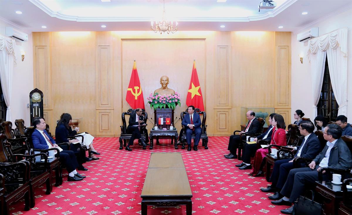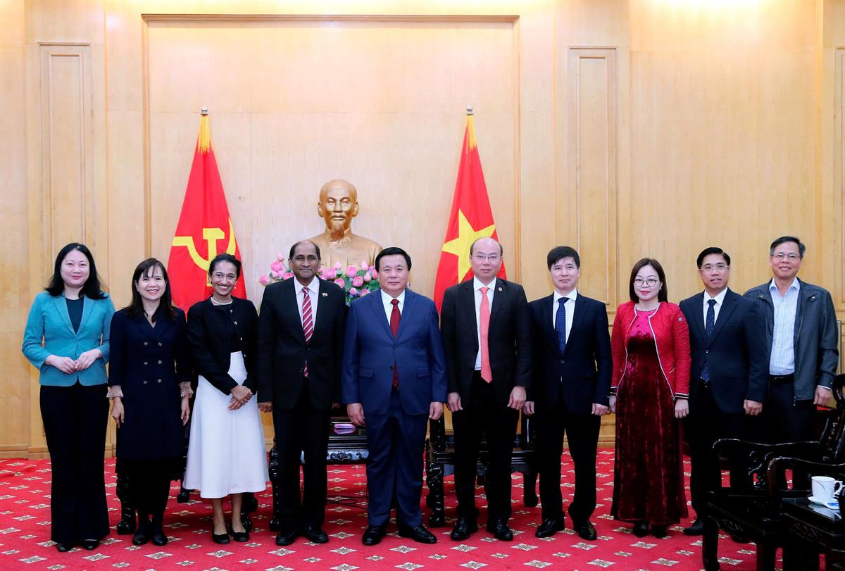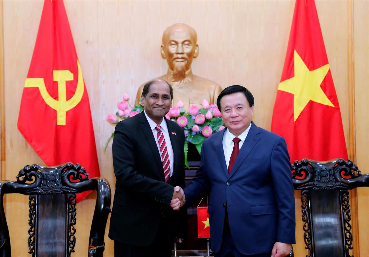 Đại sứ Jaya Ratnam (trái) đến chào từ biệt GS,TS Nguyễn Xuân Thắng, Uỷ viên Bộ Chính trị, Giám đốc Học viện Chính trị quốc gia Hồ Chí Minh, Chủ tịch Hội đồng Lý luận Trung ương nhân kết thúc nhiệm kỳ công tác