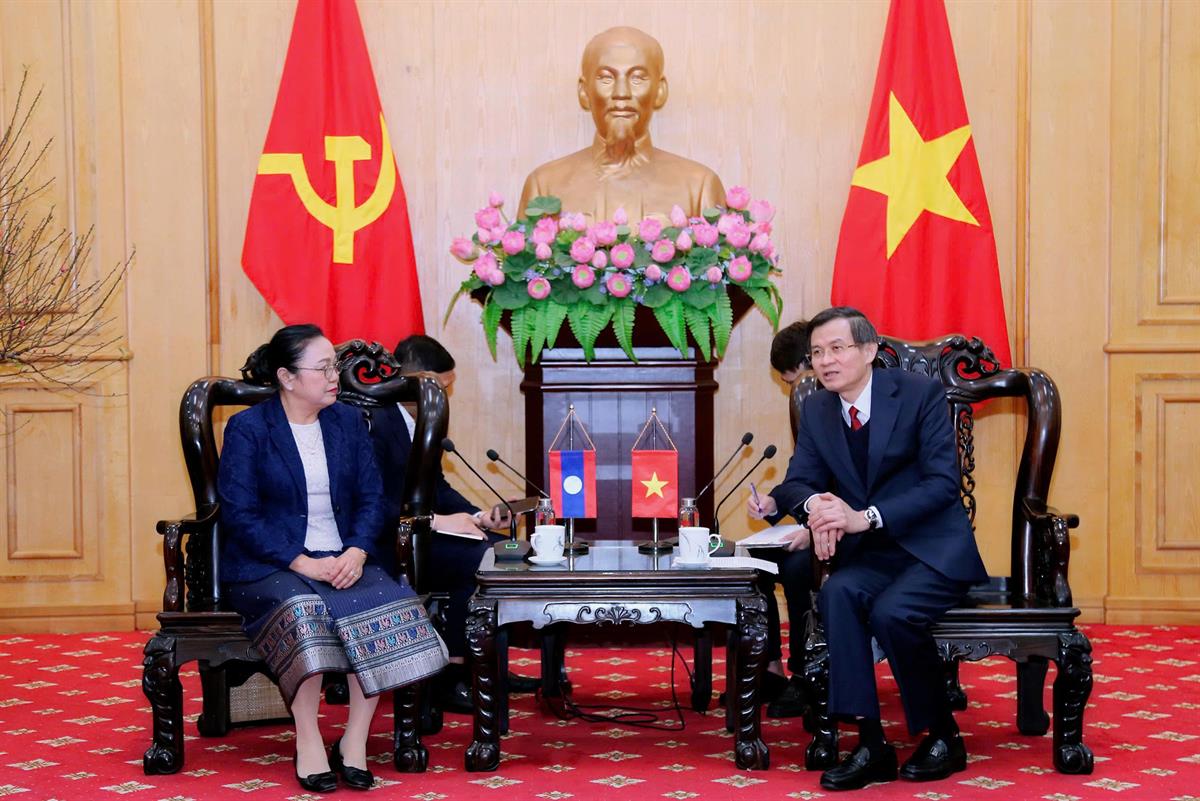 Trong tổng thể quan hệ đặc biệt Việt Nam – Lào, PGS,TS Đoàn Minh Huấn nhấn mạnh, Đại sứ quán Lào tại Việt Nam và cá nhân đồng chí Đại sứ giữ vai trò hết sức quan trọng. PGS,TS Đoàn Minh Huấn tin tưởng rằng, với bề dày kinh nghiệm, năng lực và tâm huyết trong hoạt động đối ngoại, đồng chí Đại sứ sẽ hoàn thành xuất sắc nhiệm vụ mà Đảng, Nhà nước Lào giao phó, góp phần củng cố và tăng cường hơn nữa mối quan hệ hữu nghị vĩ đại, đoàn kết đặc biệt, hợp tác toàn diện, gắn kết chiến lược giữa hai nước.