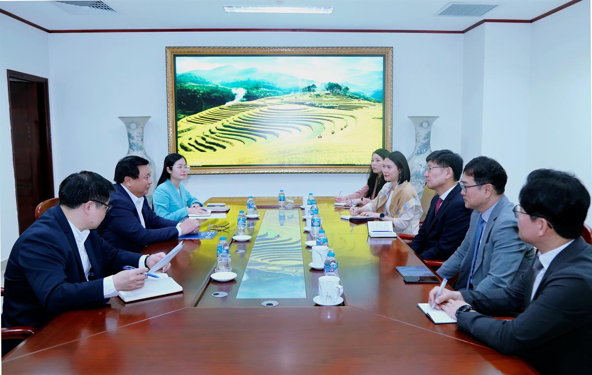 GS,TS Nguyễn Xuân Thắng, Ủy viên Bộ Chính trị khóa XIII, nguyên Giám đốc Học viện Chính trị quốc gia Hồ Chí Minh, Chủ tịch Hội đồng Lý luận Trung ương chủ trì buổi tiếp và làm việc với ông Na Ki Hong, Tổng Giám đốc Samsung Việt Nam