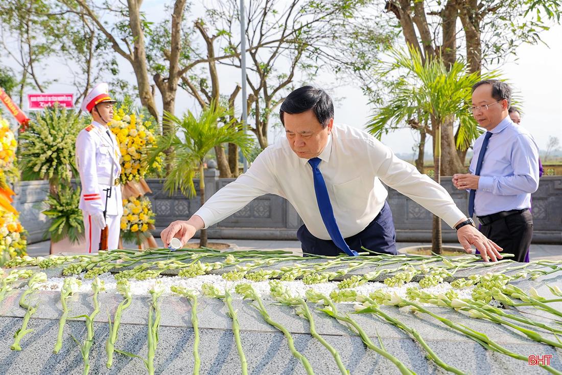Đồng chí Nguyễn Xuân Thắng và các đại biểu dâng hương Đại thi hào Nguyễn Du.
