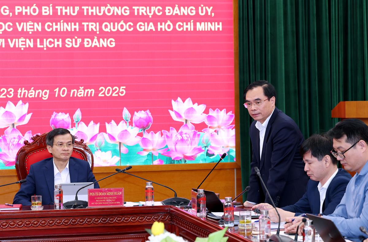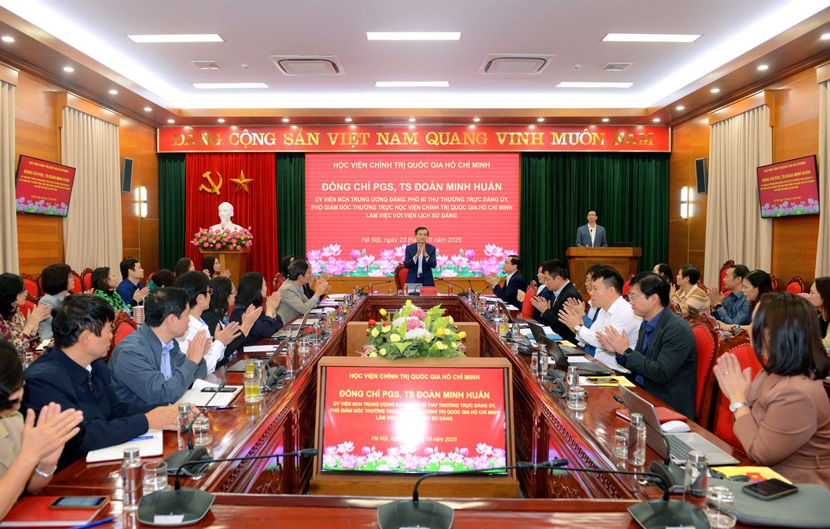 Đồng chí Ủy viên Trung ương Đảng, Phó Giám đốc thường trực Học viện Chính trị quốc gia Hồ Chí Minh làm việc với Viện Lịch sử Đảng