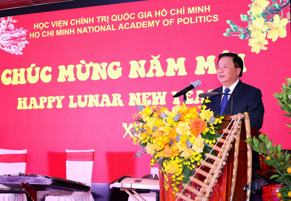 Phát biểu khai mạc PGS,TS Đoàn Minh Huấn, Ủy viên Bộ Chính trị, Giám đốc Học viện bày tỏ vui mừng chào đón những người bạn, những đối tác quốc tế thân thiết trong buổi gặp mặt cuối năm truyền thống của Học viện Chính trị quốc gia Hồ Chí Minh và khẳng định, đây là thời khắc quan trọng để cùng nhìn lại một năm qua, chia sẻ những cảm xúc và ước vọng của một năm mới tốt đẹp đang tới.