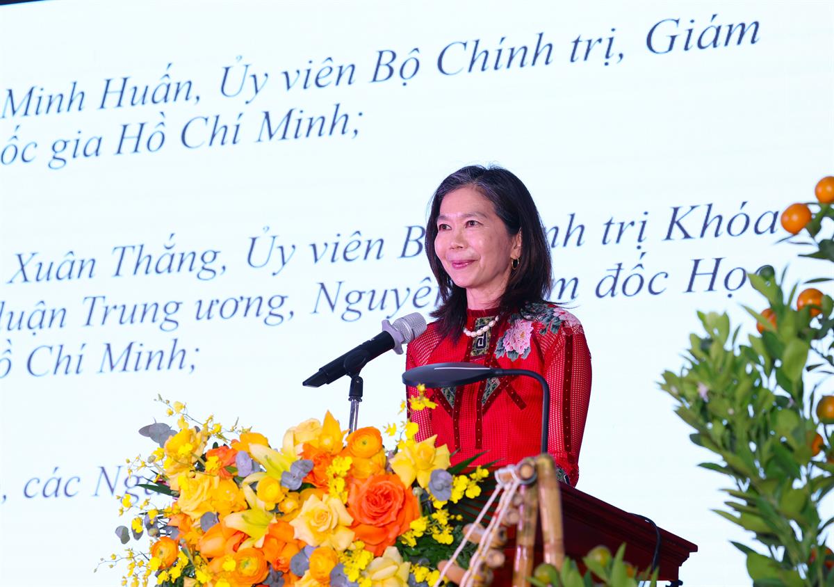 Phát biểu tại buổi Gặp mặt mừng Xuân, Bà Pauline Tamesis, Điều phối viên Thường trú Liên hợp quốc tại Việt Nam bày tỏ vinh dự được tham dự sự kiện ý nghĩa này. Bà Pauline Tamesis chúc mừng PGS,TS Đoàn Minh Huấn, Ủy viên Bộ Chính trị khóa XIV, được bổ nhiệm giữ chức Giám đốc và Bí thư Đảng ủy Học viện nhiệm kỳ 2025–2030; đồng thời trân trọng cảm ơn GS,TS Nguyễn Xuân Thắng trong vai trò lãnh đạo với những đóng góp bền bỉ trong việc thúc đẩy và củng cố quan hệ đối tác giữa Liên hợp quốc và Việt Nam trong suốt thời gian qua.