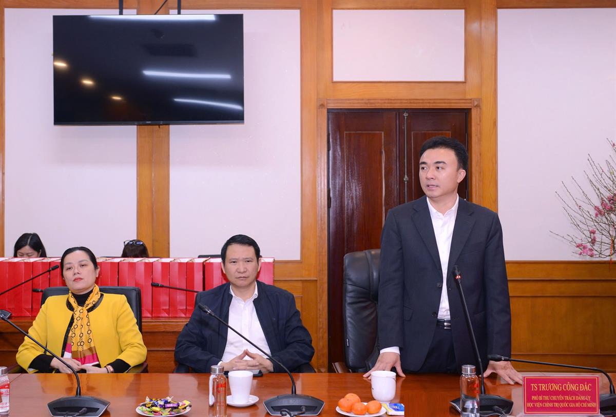 Phát biểu tại buổi gặp mặt, TS Trương Công Đắc, Phó Bí thư chuyên trách Đảng uỷ Học viện Chính trị quốc gia Hồ Chí Minh nhấn mạnh, đây là hoạt động thường niên của Học viện Chính trị quốc gia Hồ Chí Minh thể hiện sự quan tâm sâu sắc của Đảng ủy, Ban Giám đốc Học viện đối với đời sống tinh thần của cán bộ, viên chức và người lao động; là truyền thống văn hoá tốt đẹp, thể hiện tinh thần tương thân, tương ái. Những phần quà tuy giá trị vật chất không lớn, nhưng được gửi gắm trong đó là nghĩa tình, sự sẻ chia và mong muốn cán bộ, viên chức, người lao động có thêm động lực, thêm nghị lực để vươn lên, yên tâm công tác và đón mùa Xuân mới thật sự trọn vẹn và ấm áp.
