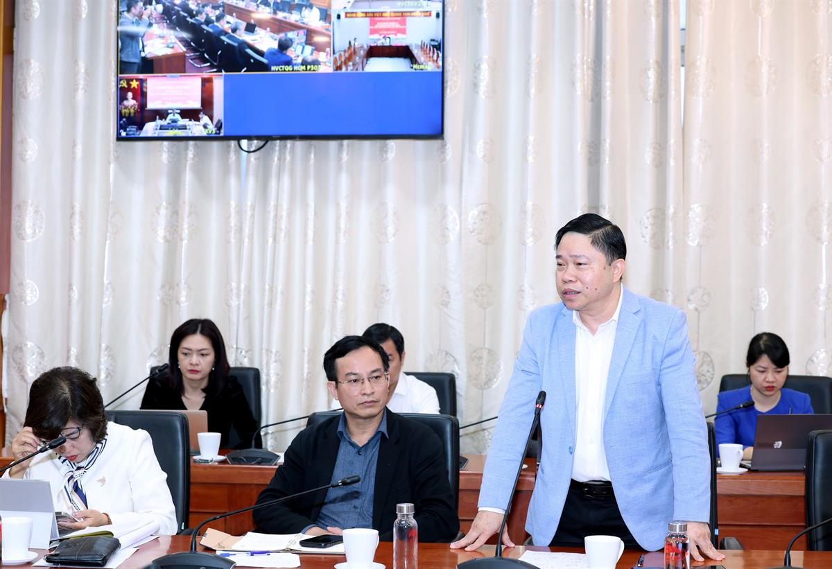 PGS,TS Lê Hải Bình, Ủy viên Trung ương Đảng, Phó Giám đốc thường trực Học viện phát biểu ý kiến tại hội nghị _ảnh: Mạnh Thắng