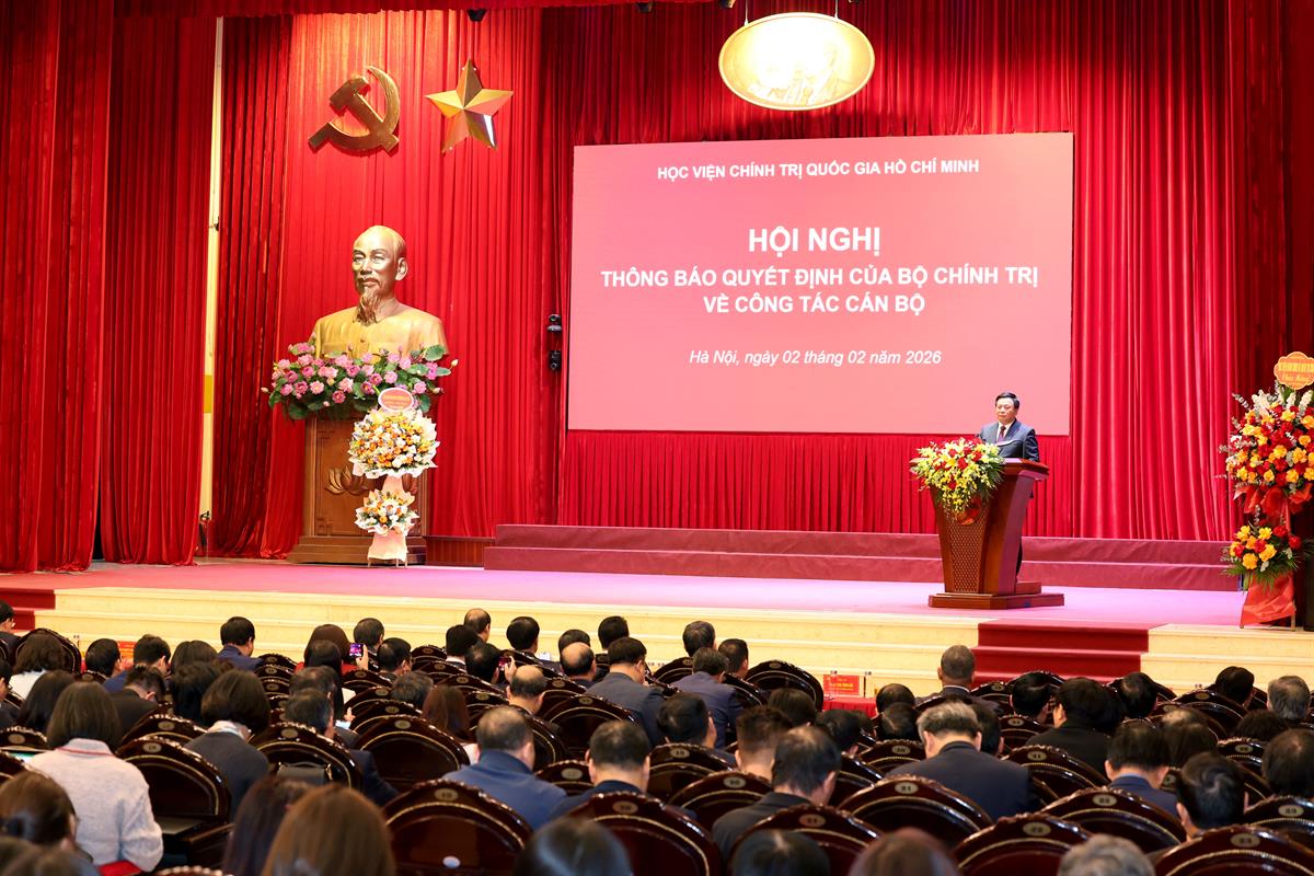 Cũng tại hội nghị, đồng chí Nguyễn Duy Bắc thông tin về việc tại Hội nghị Trung ương lần thứ nhất, đồng chí Đoàn Minh Huấn được Ban Chấp hành Trung ương Đảng tín nhiệm bầu vào Bộ Chính trị. Ngày 30/01/2026, Tổng Bí Thư Tô Lâm đã trao Quyết định về công tác cán bộ, phân công, bổ nhiệm đồng chí Đoàn Minh Huấn giữ chức Giám đốc Học viện Chính trị quốc gia Hồ Chí Minh. Tiếp đó, tại Hội nghị hôm nay, đồng chí Trần Cẩm Tú, Ủy viên Bộ Chính trị, Thường trực Ban Bí thư đã trao Quyết định của Ban Thường vụ các cơ quan Đảng Trung ương chỉ định đồng chí Đoàn Minh Huấn giữ chức Bí thư Đảng ủy Học viện Chính trị quốc gia Hồ Chí Minh, nhiệm kỳ 2025–2030.
