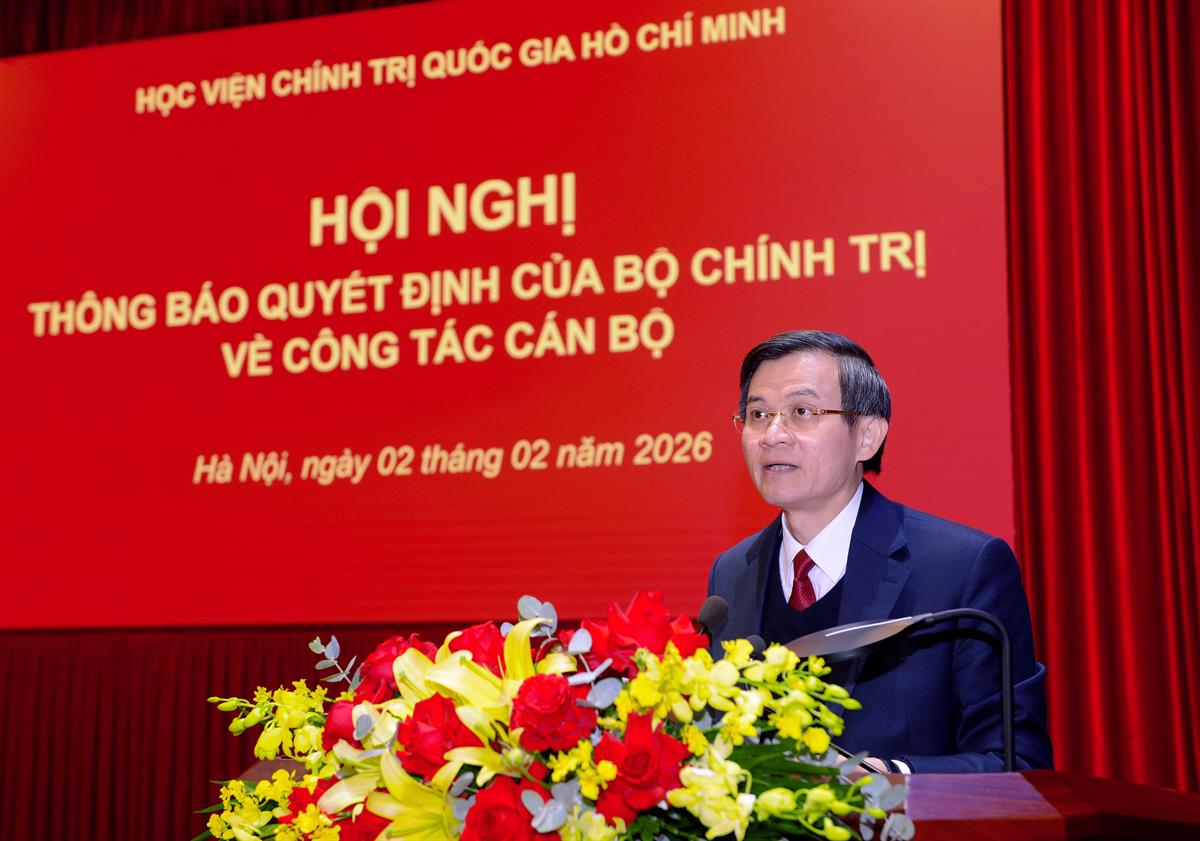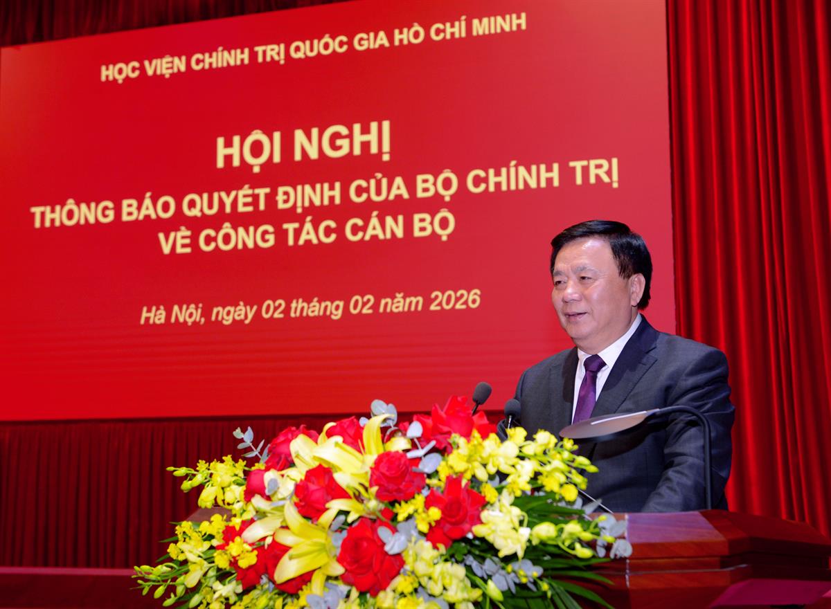 Phát biểu tại hội nghị, PGS,TS Đoàn Minh Huấn, Ủy viên Bộ Chính trị, Bí thư Đảng ủy, Giám đốc Học viện Chính trị quốc gia Hồ Chí Minh bày tỏ niềm vinh dự, xúc động sâu sắc trước sự tin tưởng của Đảng, Nhà nước và Ban Chấp hành Trung ương Đảng khi giao phó trọng trách lãnh đạo Học viện trong giai đoạn phát triển mới.