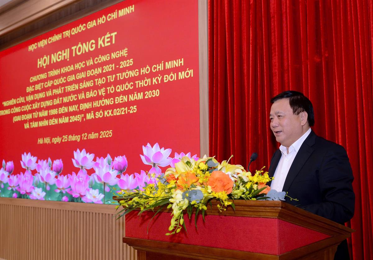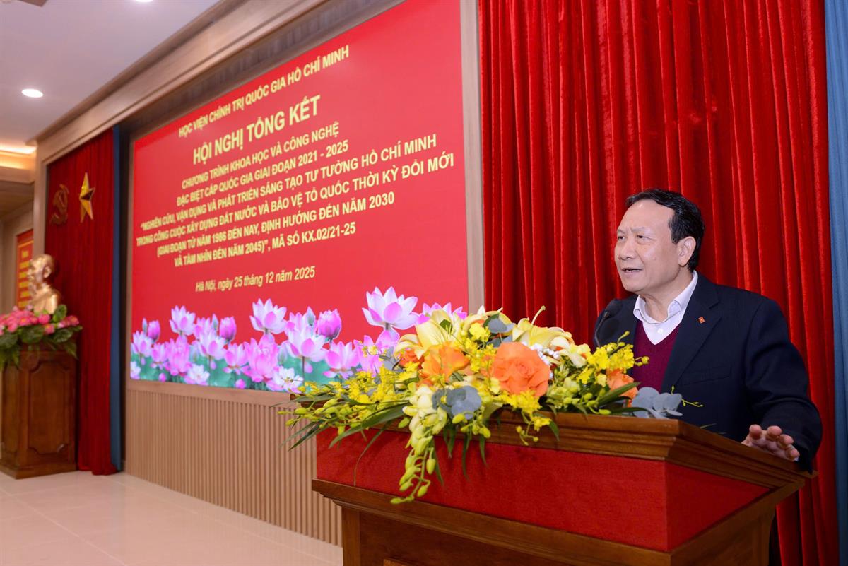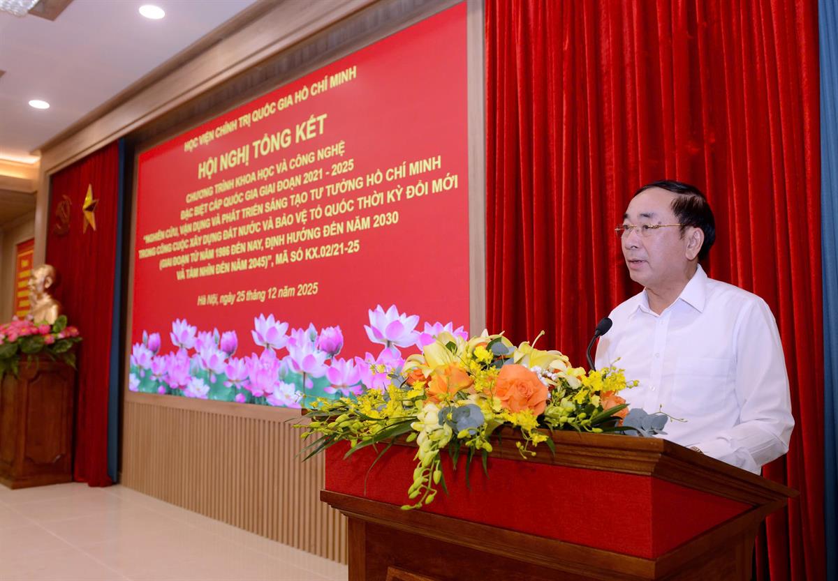 Hội nghị tổng kết Chương trình khoa học và công nghệ đặc biệt cấp quốc gia giai đoạn 2021-2025 “Nghiên cứu, vận dụng và phát triển sáng tạo tư tưởng Hồ Chí Minh trong công cuộc xây dựng đất nước và bảo vệ Tổ quốc thời kỳ đổi mới”, mã số KX.02/21-25