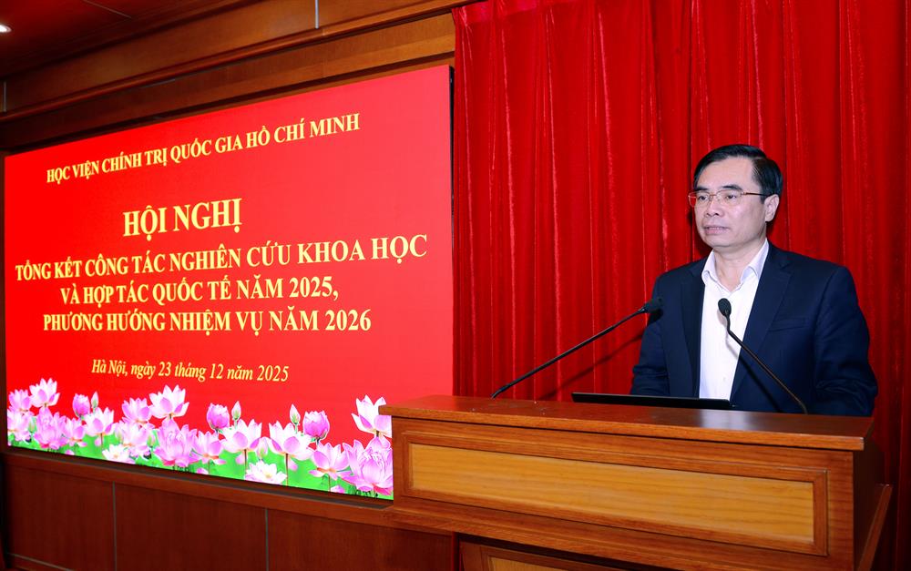 Báo cáo tổng kết cho biết, năm 2025, trong bối cảnh triển khai Quyết định số 214-QĐ/TW về chức năng, nhiệm vụ và tổ chức bộ máy, bám sát tinh thần Nghị quyết số 57-NQ/TW, Nghị quyết 59-NQ/TW, lĩnh vực khoa học và hợp tác quốc tế của Học viện Chính trị quốc gia Hồ Chí Minh tiếp tục được triển khai chủ động, bài bản, có trọng tâm, trọng điểm, bám sát nhiệm vụ chính trị của Đảng, Nhà nước và yêu cầu phát triển trong giai đoạn mới. Các hoạt động được tổ chức theo hướng tổng thể, đồng bộ, tăng cường chất lượng và hiệu quả, qua đó khẳng định rõ hơn vai trò của Học viện là trung tâm quốc gia nghiên cứu lý luận chính trị, khoa học lãnh đạo, quản lý, hành chính công; đồng thời là đầu mối tham mưu chiến lược và tư vấn chính sách quan trọng của Đảng, Nhà nước.