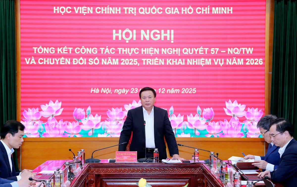 Trên nền tảng những kết quả quan trọng đã đạt được trong năm bản lề 2025, căn cứ Quyết định số 214-QĐ/TW và tinh thần chỉ đạo của Nghị quyết 57-NQ/TW, GS,TS Nguyễn Xuân Thắng xác định năm 2026 phải là năm “tăng tốc, bứt phá và đi vào chiều sâu” trong công tác chuyển đổi số của Học viện Chính trị quốc gia Hồ Chí Minh. Đây không chỉ là yêu cầu kỹ thuật mà là nhiệm vụ chính trị trọng tâm để đổi mới căn bản, toàn diện chất lượng đào tạo và nghiên cứu lý luận và quản lý nhà nước. GS,TS Nguyễn Xuân Thắng tin tưởng, với truyền thống đoàn kết, trí tuệ và bản lĩnh của ngôi trường Đảng mang tên Bác, cùng với sự quyết liệt trong chỉ đạo và hành động, Học viện Chính trị quốc gia Hồ Chí Minh sẽ hoàn thành xuất sắc các mục tiêu đề ra, các nhiệm vụ được Đảng, Nhà nước và nhân dân giao phó./.