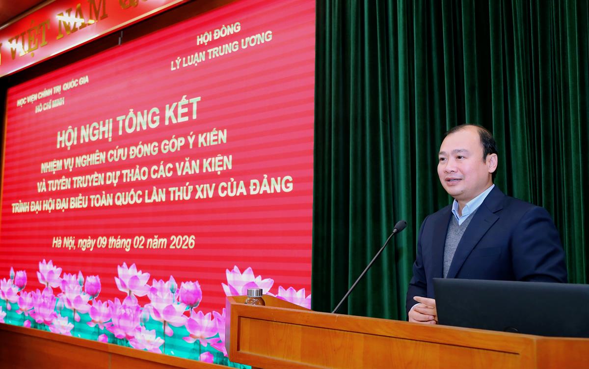Báo cáo tổng kết hội nghị, PGS,TS Nguyễn Mạnh Hùng, Phó Giám đốc Học viện, Phó Chủ tịch Hội đồng Lý luận Trung ương khẳng định, thực hiện Kế hoạch số 1112-KH/HVCTQG của Học viện Chính trị quốc gia Hồ Chí Minh ban hành ngày 14/10/2025 về việc tổ chức nghiên cứu, đóng góp ý kiến và tuyên truyền dự thảo các văn kiện trình Đại hội XIV của Đảng, toàn hệ thống Học viện và Hội đồng Lý luận Trung ương đã phát huy tối đa vai trò là trung tâm nghiên cứu lý luận hàng đầu. Với tinh thần trách nhiệm cao và sự chỉ đạo thống nhất từ Ban Chỉ đạo do đồng chí Giám đốc Học viện làm Trưởng ban, quá trình triển khai đã đảm bảo tính dân chủ, khoa học và thực chất.