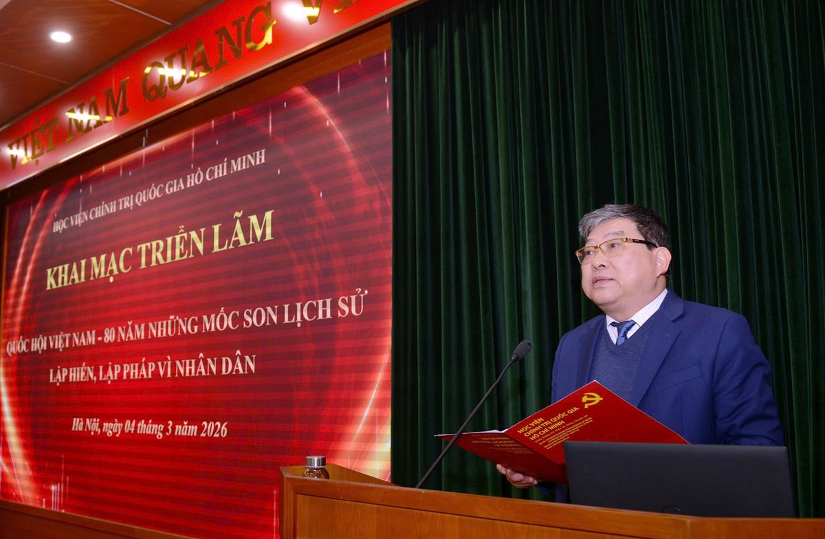 Phát biểu khai mạc, PGS,TS Nguyễn Duy Bắc, Phó Giám đốc Học viện khẳng định vai trò quan trọng của Quốc hội Việt Nam trong suốt quá trình lịch sử dựng nước và giữ nước. Đồng chí nhấn mạnh, từ cuộc Tổng tuyển cử đầu tiên năm 1946, Quốc hội đã chính thức ra đời, đánh dấu bước ngoặt quan trọng trong việc hình thành và củng cố quyền lực nhà nước của dân, do dân, vì dân. Trải qua các giai đoạn lịch sử khác nhau, trong những điều kiện và hoàn cảnh khác nhau, Quốc hội Việt Nam không ngừng đổi mới, hoàn thiện tổ chức và hoạt động, ngày càng khẳng định vai trò trung tâm trong đời sống chính trị - pháp lý của đất nước, gắn bó chặt chẽ với vận mệnh của dân tộc và quyền lợi của Nhân dân.