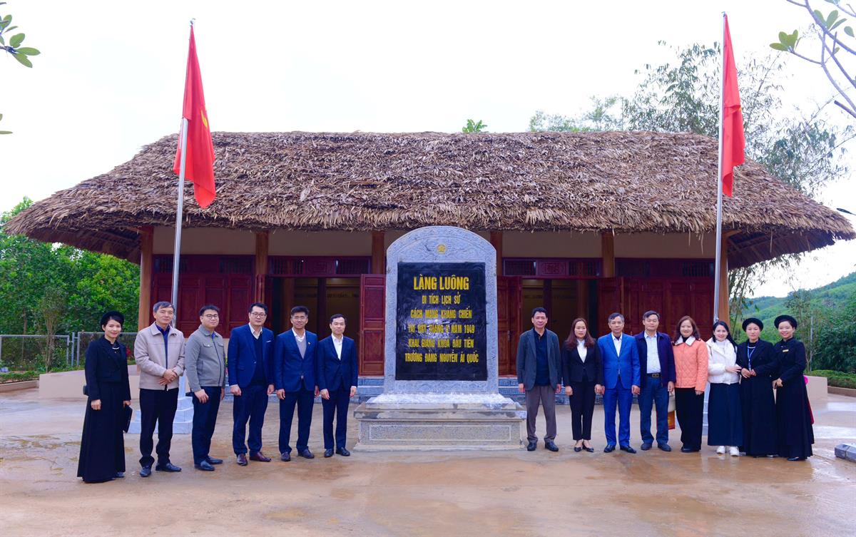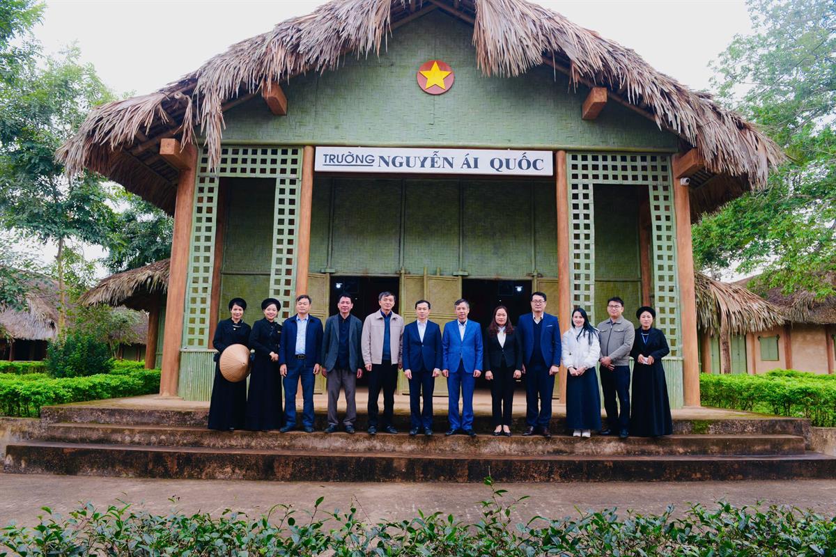 Đoàn chụp ảnh lưu niệm tại Di tích Trường Đảng Nguyễn Ái Quốc