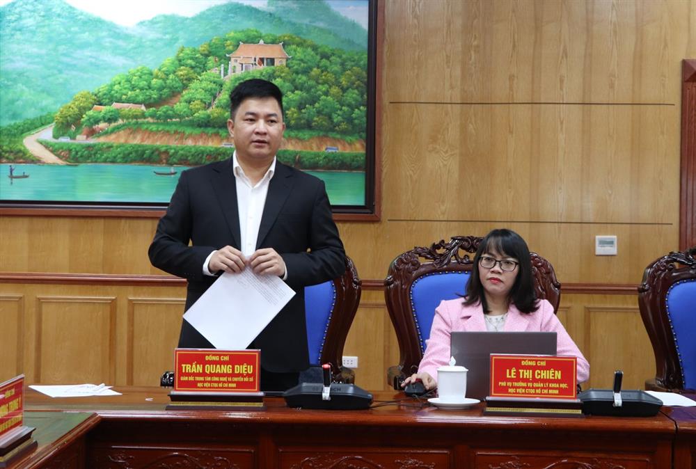 Chủ trì buổi làm việc có đồng chí Sùng A Hồ - Phó Bí thư Thường trực Tỉnh ủy, Chủ tịch Ủy ban MTTQ Việt Nam tỉnh, Trưởng Ban Chỉ đạo 35 tỉnh; PGS, TS Dương Trung Ý - Phó Giám đốc Học viện, Phó Trưởng ban Thường trực Ban Chỉ đạo 35 Học viện.