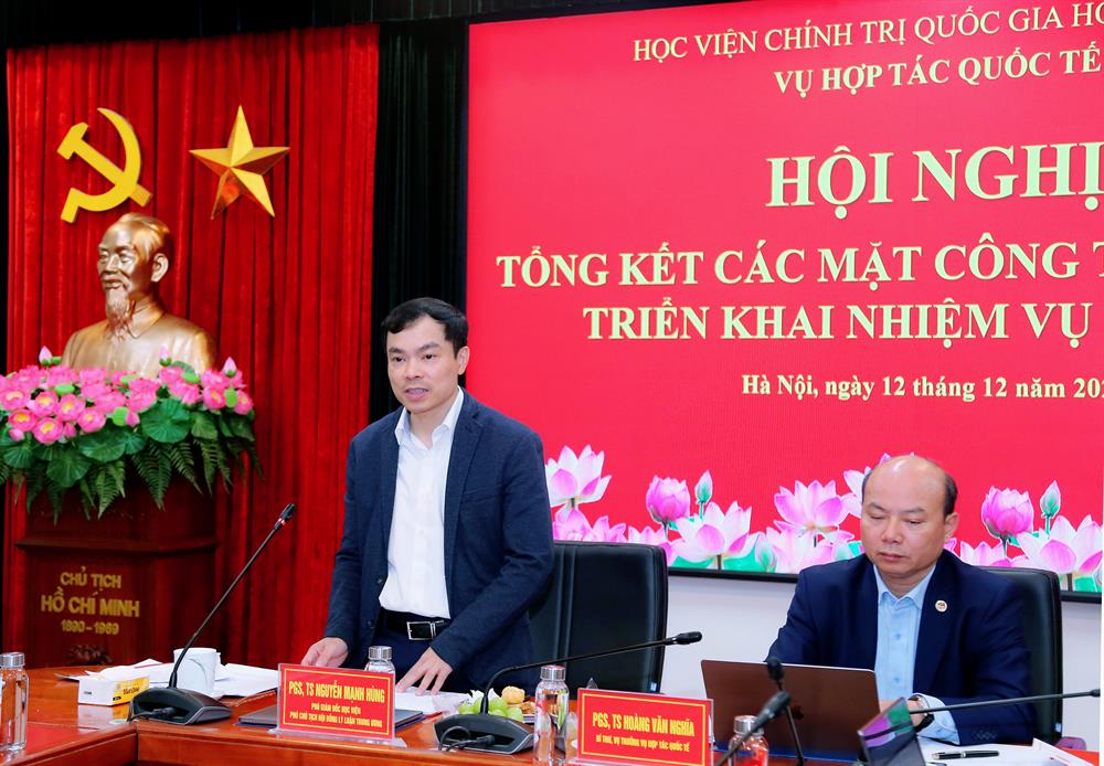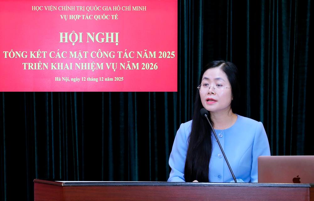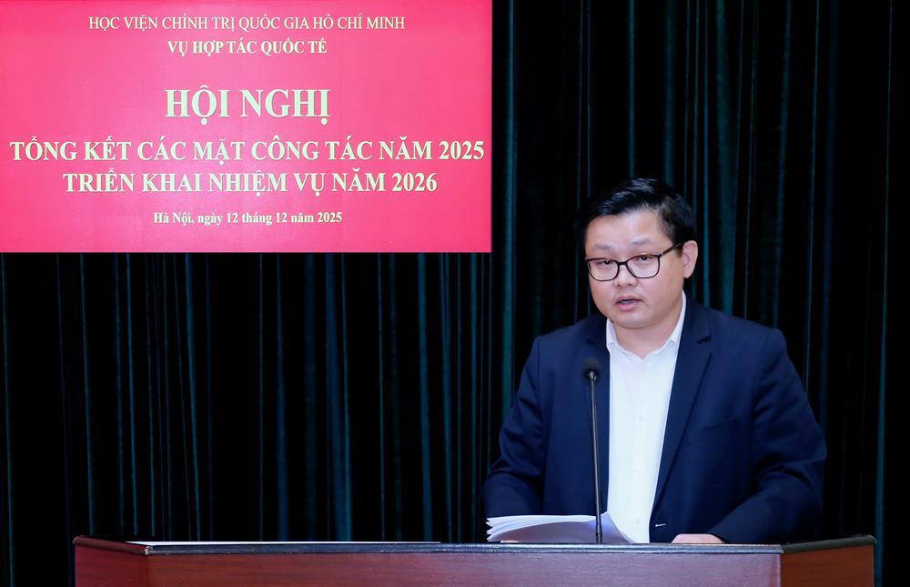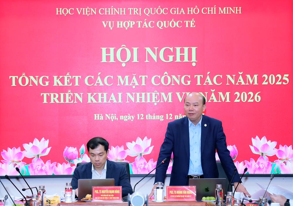 Phát biểu chỉ đạo hội nghị, PGS,TS Nguyễn Mạnh Hùng, Phó Giám đốc Học viện Chính trị quốc gia Hồ Chí Minh ghi nhận và đánh giá cao những kết quả nổi bật Vụ Hợp tác quốc tế đã đạt được trong năm 2025, nhất là trong bối cảnh có nhiều biến đổi nhanh và đa dạng, khối lượng công việc lớn.