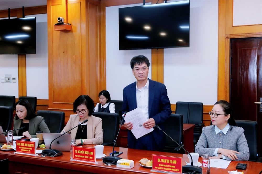 Về phương hướng nhiệm vụ năm 2026, PGS,TS Nguyễn Mạnh Hùng thống nhất với nội dung báo cáo, đồng thời định hướng một số nhiệm vụ trọng tâm cần tập trung trong thời gian tới. Trong đó, đồng chí yêu cầu Vụ Hợp tác quốc tế cần đổi mới tư duy về công tác hợp tác quốc tế của Học viện – đây là yếu tố nền tảng cho đổi mới các hoạt động, các khâu công việc tiếp theo.