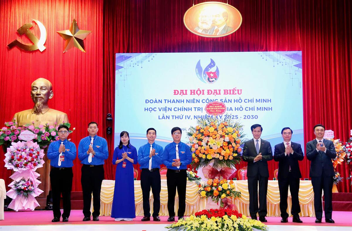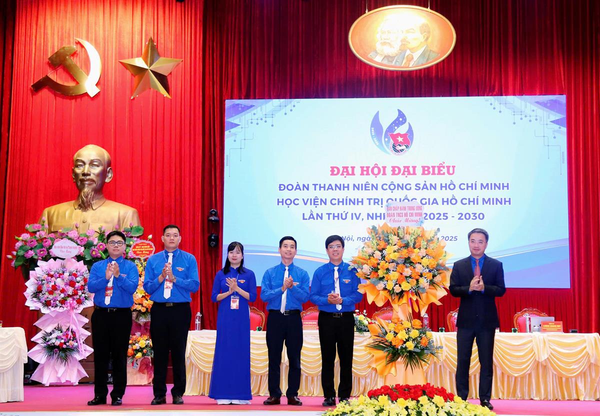 Lãnh đạo Đảng uỷ, Ban Giám đốc Học viện và lãnh đạo Đoàn các cơ quan Đảng Trung ương tặng hoa chúc mừng Ban Chấp hành Đoàn Thanh niên khóa IV nhiệm kỳ 2025-2030 vừa được bầu tại Đại hội